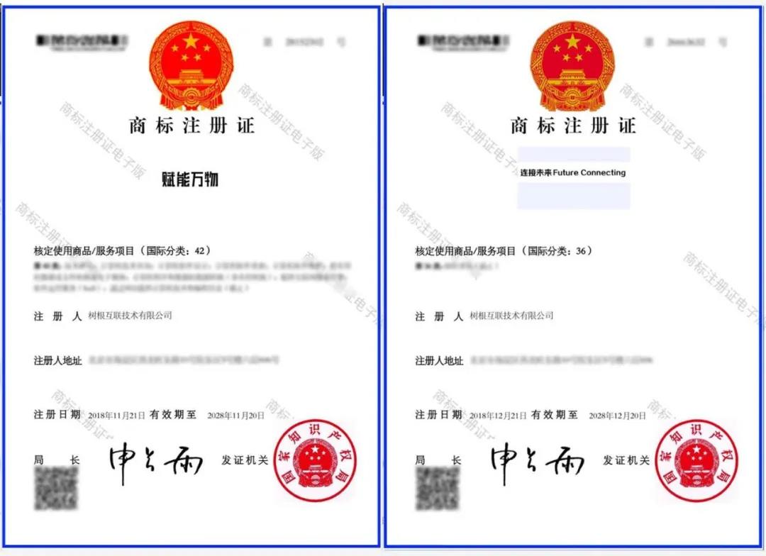 樹根科技對"賦能萬物,連接未來"有商標專用權