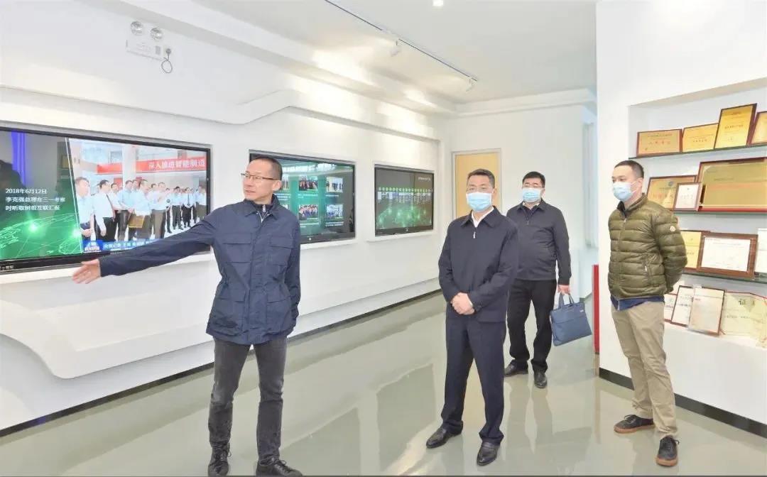 王中丙認真觀摩了相關應用場景展示,細致詢問了數據采集、軌跡跟蹤、趨勢分析、智能預警等各項技術開發運用的具體情況,對樹根科技在工業互聯網平臺賦能安全生產方面的探索實踐予以充分肯定。