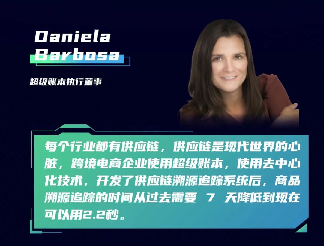 超級賬本執行董事Daniela Barbosa則在現場帶來了更多關于“超級賬本”的論點,她表示超級賬本不但持續推進區塊鏈技術,也持續關注行業應用,這次發布制造業特別興趣小組,是在原來的垂直行業的特別興趣小組比如金融貿易、資本市場、氣候、電信、供應鏈等領域外的一次突破,也意味著制造業使用區塊鏈正走向成熟。由信通院和樹根格致選出來了兩位組長,也表示他們在制造業中使用區塊鏈的領導地位。未來期待和更多中國優秀代表達成合作,共同推進中國工業區塊鏈的進展。