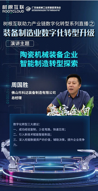 聚焦陶瓷機(jī)械裝備行業(yè)的智能制造轉(zhuǎn)型,佛山市科達(dá)裝備制造有限公司總經(jīng)理周國勝分享了陶瓷機(jī)械裝備企業(yè)在產(chǎn)業(yè)升級(jí)中如何結(jié)合智能化、信息化、數(shù)字化等手段,推動(dòng)業(yè)務(wù)模式創(chuàng)新和運(yùn)營改革。