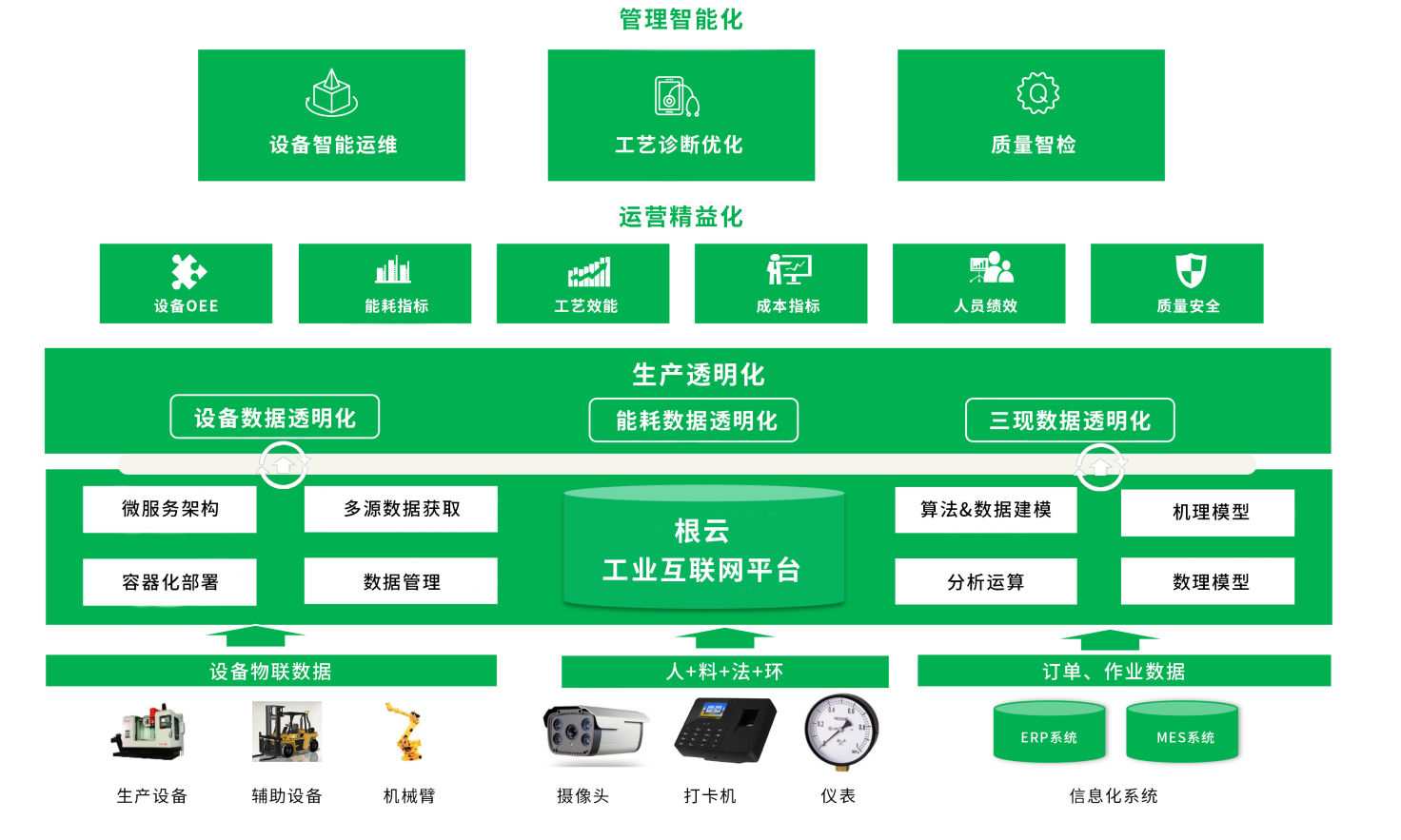 結(jié)合對工業(yè)轉(zhuǎn)型的深入理解與實(shí)踐,樹根科技提出裝備制造廠內(nèi)數(shù)智化轉(zhuǎn)型的四條路徑,通過“產(chǎn)線數(shù)字化-生產(chǎn)透明化-運(yùn)營精益化-管理智能化”搭建基于數(shù)據(jù)閉環(huán)驅(qū)動(dòng)的卓越制造體系,打通全價(jià)值鏈,實(shí)現(xiàn)柔性化生產(chǎn)以及精益化管理和決策。
