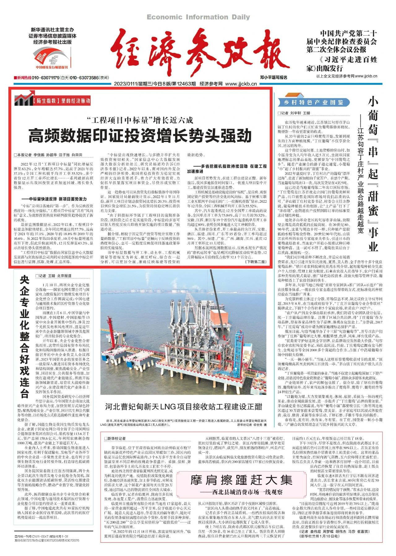 最新監測數據顯示,2022年以來,工程項目中標量總體較快增長,全年同比增速達到57.7%,遠高于2021年的37.1%、2020年的18.8%和2019年的10.6%。從2022年第四季度看,10月中標量增速雖有所下滑,但此后快速回升,12月反彈至63.2%,顯示出增長勢頭依然強勁。