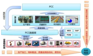 廠房建設有 PCC生產控制中心,通過對生產過程中物料、設備、輔助生產資源等數據采集,并集成PDM\ERP\CRM\MES等應用系統(tǒng),實現訂單執(zhí)行與生產現場的集中管理與調度。核心業(yè)務包括生產計劃與執(zhí)行管控、質量管控、物流管控,以及生產現場視頻監(jiān)控等。