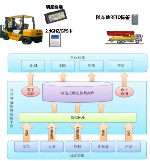 1) 通過物聯網技術實現對在制品、叉車、人員、設備資源的實時定位、追蹤與監(jiān)控;