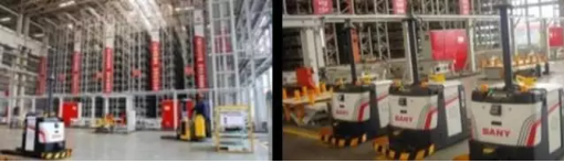 智能化立體倉庫和物流運輸系統(tǒng)實現泵車、拖泵、車載泵裝配線及部裝線所需物料的暫存、揀選、配盤功能,并與AGV配套實現工位物料自動配送至各個工位。