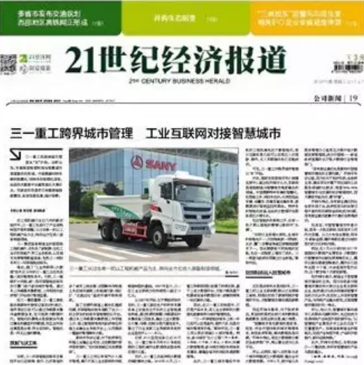 21世紀(jì)經(jīng)濟(jì)報(bào)道:《三一重工跨界城市管理 工業(yè)互聯(lián)網(wǎng)對(duì)接智慧城市》