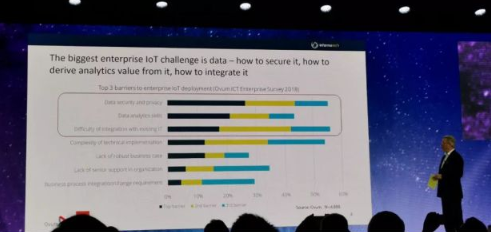 Steve Bell認為對企業而言,目前企業IoT最大的挑戰就是數據,涉及數據的隱私安全保護、數據的分析和挖掘以及數據與目前IT的關聯,這三點阻礙了企業IoT的部署,其他的阻礙因素包括執行復雜度、缺乏好的商業模式、缺乏有力的支持組織等。