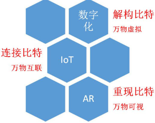 產(chǎn)品服務系統(tǒng)的崛起,依賴于同時發(fā)生的三大技術(shù):數(shù)字技術(shù)、物聯(lián)網(wǎng)IoT和增強現(xiàn)實AR。數(shù)字工業(yè)的浪潮啟動了一個新時代。數(shù)字化解構(gòu)了比特,使得萬物虛擬化;物聯(lián)網(wǎng)連接了比特,使得萬物互聯(lián);而AR技術(shù)則重現(xiàn)了比特,使得萬物可視。