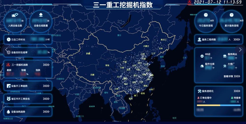 湘江之畔,三一重工“18號廠房”的大屏幕上,實時滾動著遍布全國50多萬臺挖掘機、攪拌站、起重機等工程機械的運行數據,一挖一鏟間,一張反映中國經濟活力的指數地圖躍然屏上。