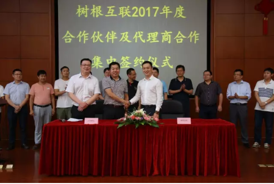 下午,樹根科技與海匯科技、北京海博信達(dá)、湖北宏星天樞、湖南中聯(lián)惠眾、山東迅能電子、深圳賽遠(yuǎn)、沈陽藍(lán)泰科瑞、四川川大智勝、四川建華科技、四川能信科技、四川中科智慧、蘇州云格、兄弟連品牌發(fā)展13家各地區(qū)的合作伙伴及代理商進(jìn)行簽約儀式。