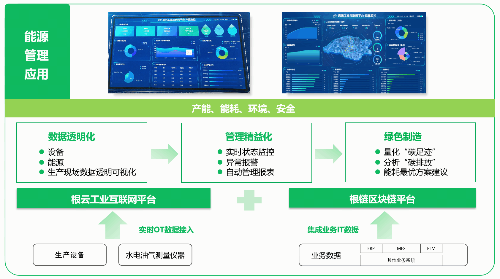 基于根云平臺的全要素連接能力和根云-能源管理的強大能耗管控能力,助力企業實現用能透明化、消費最優化、診斷智能化、運維無人化,提升能效,優化管理,實現節能減碳。
