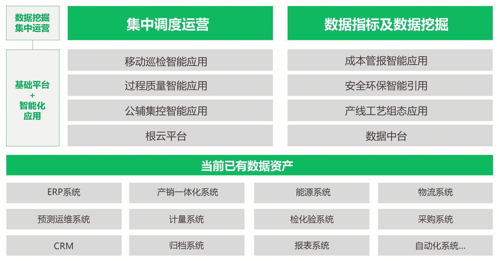 無(wú)運(yùn)營(yíng)平臺(tái)。無(wú)統(tǒng)一運(yùn)營(yíng)指揮平臺(tái),無(wú)法高效打通財(cái)務(wù)、成本、生產(chǎn)、質(zhì)量、設(shè)備、能源等統(tǒng)一高效協(xié)作運(yùn)營(yíng)管理